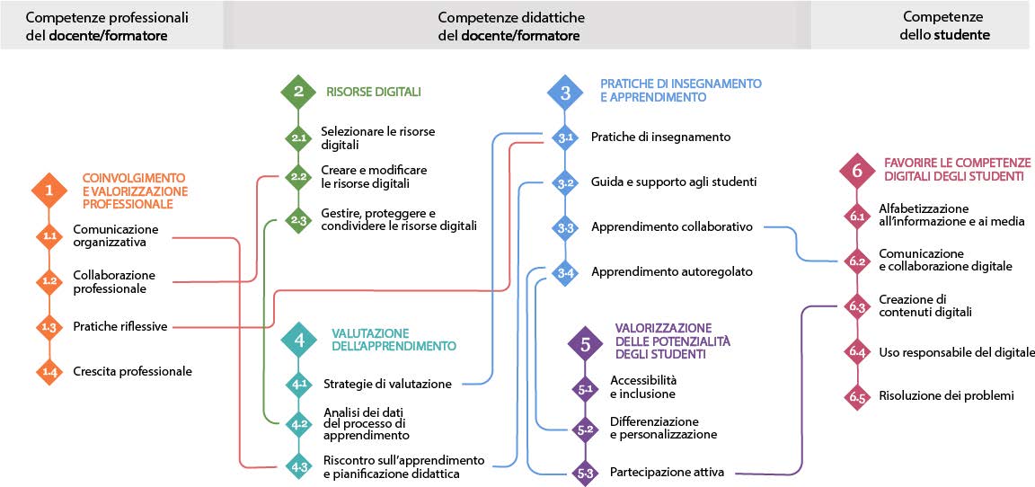 AICA ha sviluppato una certificazione basata sul framework europeo DigCompEdu che indica le competenze digitali che tutti i docenti e i formatori dovrebbero possedere.Il Syllabus è individua 22 competenze organizzate i 6 aree di competenza: